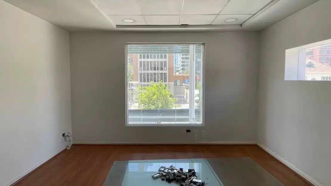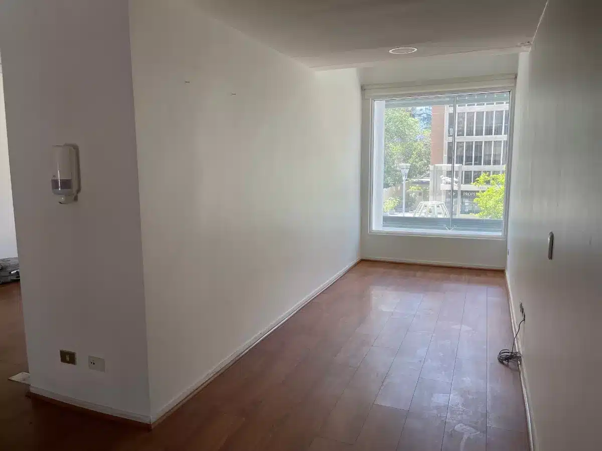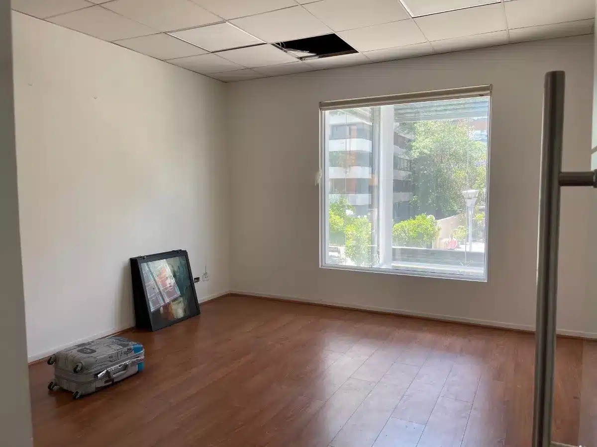 En una calle tranquila cercana a Avda. Apoquindo y a pasos de todo el sector gastronómico de Isidora Goyenechea se encuentra esta buena oficina de amplios espacios.