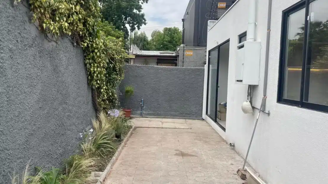 El dormitorio principal es de buen tamaño, en suite con baño con ventana y acceso al patio trasero.