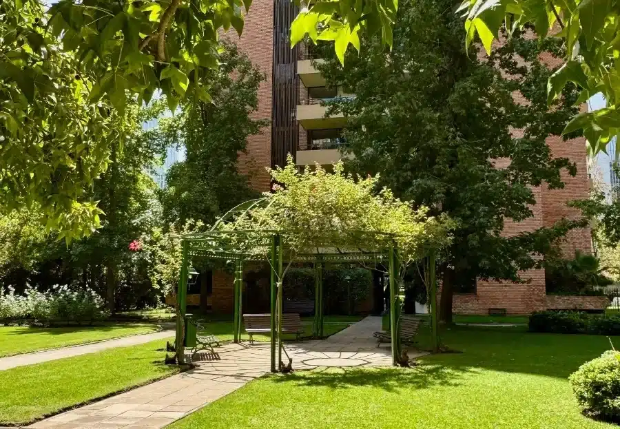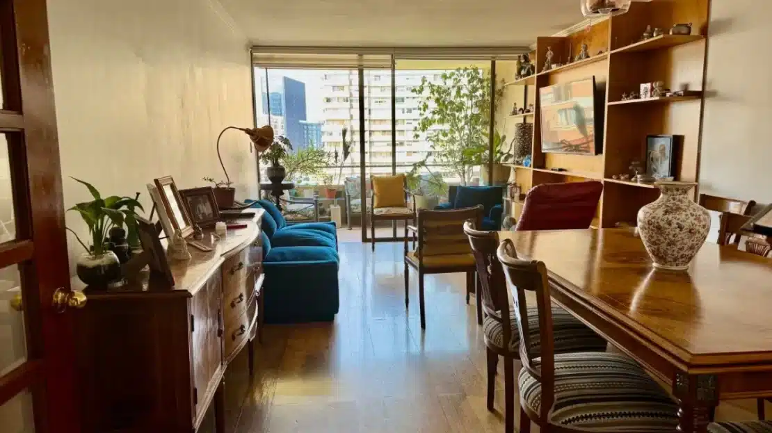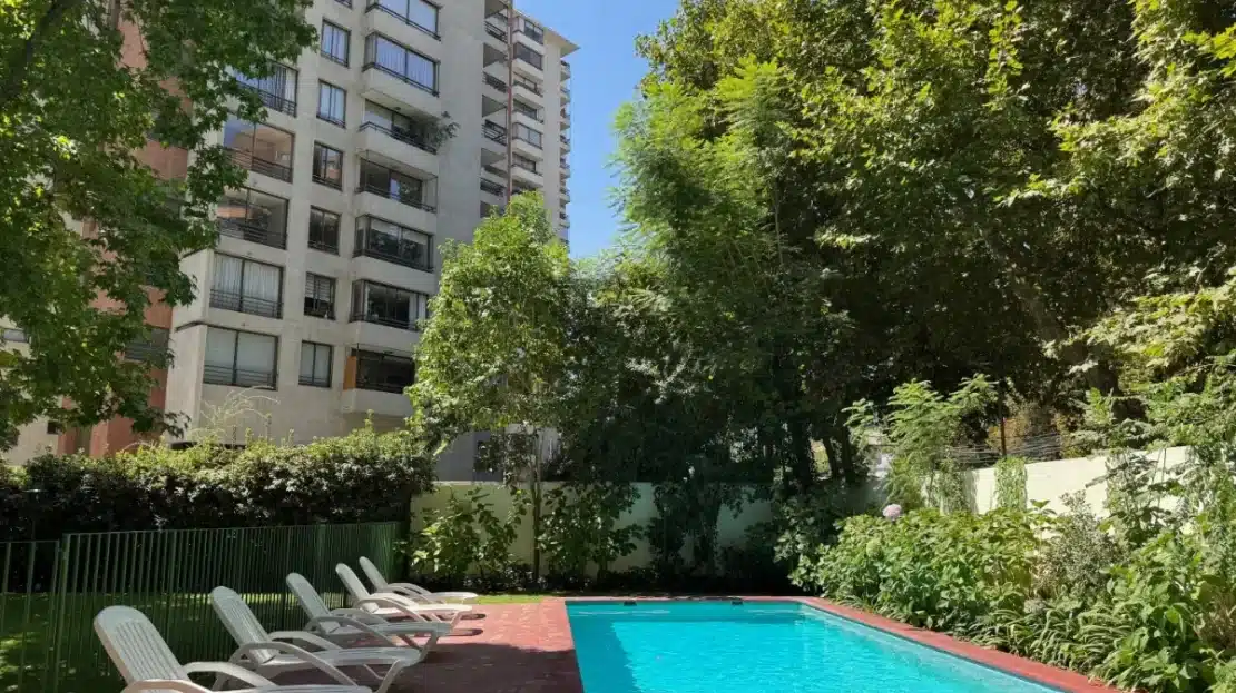 En un muy buen sector a pasos de Nueva Las Condes, muy cercano al Parque Araucano, se encuentra este buen departamento en el piso catorce de un condominio cerrado con bonitos jardines y mucha seguridad. Ingresamos a través de un amplio hall de acceso que distribuye los espacios. A mano derecha se encuentra el living comedor. Este espacio es de buen tamaño y tiene salida a una buena terraza. Desde el acceso enfrentamos el pasillo donde están los dormitorios. El dormitorio principal es de buen tamaño y posee terraza independiente. Tiene walking closet y baño en suite. Los otros dos dormitorios son muy amplios y poseen buenos closet y comparten un baño. En el pasillo existe la opción de ingresar a un cuarto dormitorio o pieza de servicio de buen tamaño, a la que se puede acceder tambien por la cocina. Esta pieza posee baño en su interior La cocina es amplia, posee muchos muebles para guardar y buenas superficies de trabajo, además de un buen sector de comedor de diario. La loggia está a continuación de la cocina y posee una gran ventana que otorga luz y ventilación. CARACTERISTICAS DEPARTAMENTO Calefacción central + piso flotante + granito en cocina + cocina encimera + campana + 2 estacionamientos subterráneos + 1 bodega CARACTERISTICAS EDIFICIO Acceso controlado + conserje 24 hrs. + jardines + piscina + estupendo gimnasio + sala de eventos + sala de niños + juegos infantiles + lavandería + estacionamientos de visita CARACTERISTICAS BARRIO Parques + Parque Araucano + Apumanque + restaurantes + cafés + ciclovías + servicios básicos + Metro Manquehue Coordinar con Jacqueline Rupert al 992501973 o Cecilia Ramoneda al 992371976 Rupert y Ramoneda Propiedades