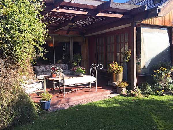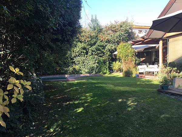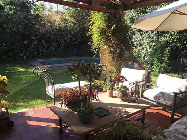 Lindo jardin con terraza, piscina y riego. Calle tranquila cercana a Colegio Cordillera, Paseo Los Dominicos.