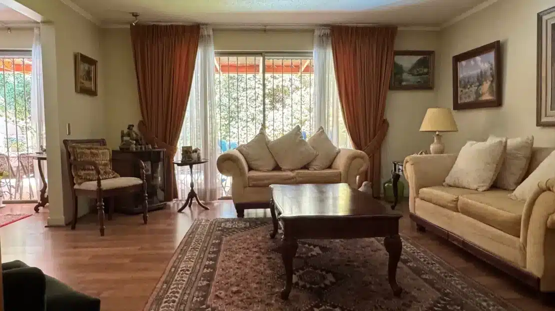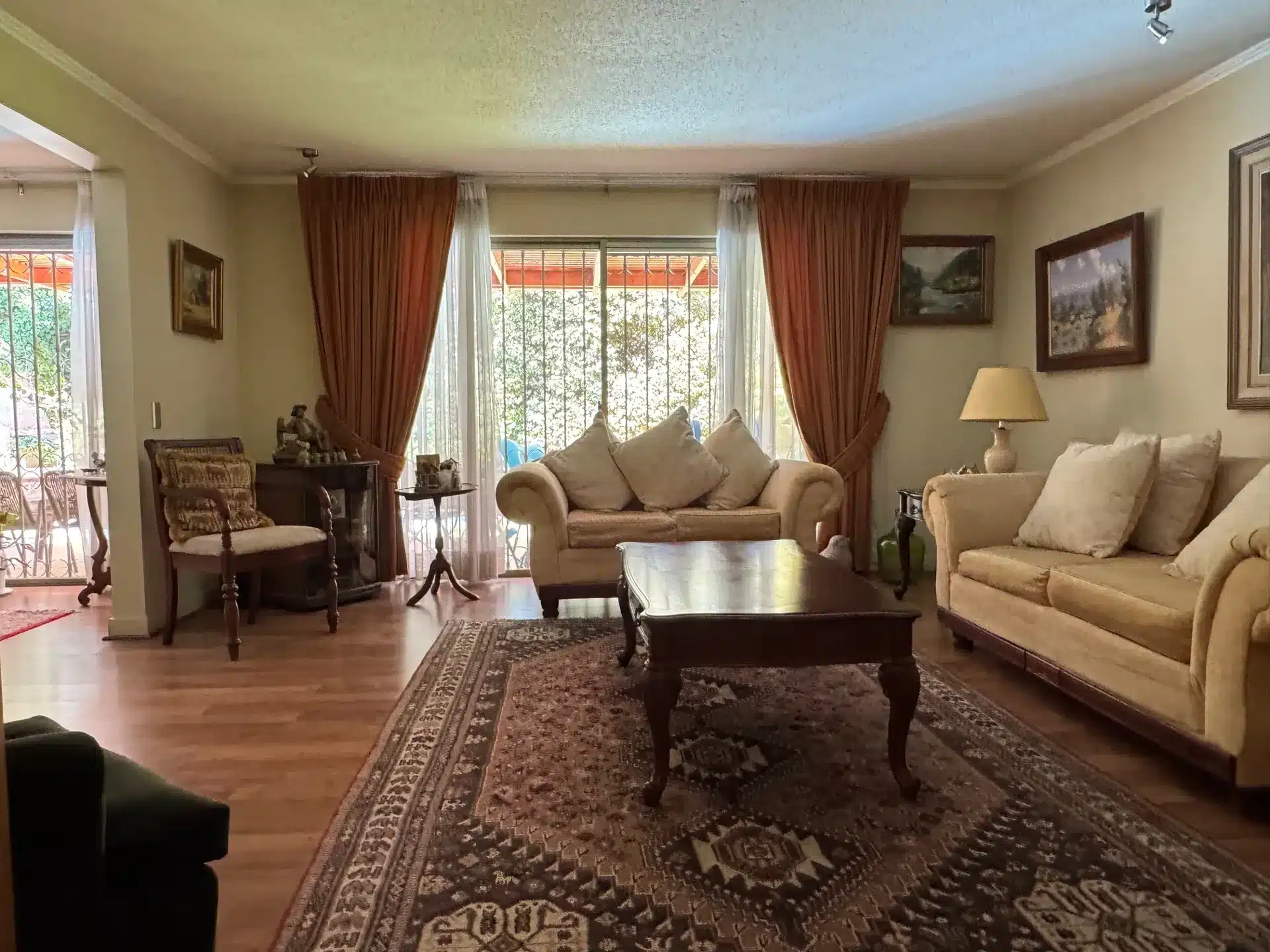 En un agradable sector tranquilo de San Carlos de Apoquindo se encuentra esta buena casa de tres pisos con buenos espacios. Accedemos a la casa a través de un amplio hall de acceso. A mano izquierda del acceso se encuentra el baño de visitas. Enfrentando el acceso se encuentran los recibos, espacios separados, de muy buen tamaño, con salida directa al jardín posterior. El jardín posterior es muy agradable, con una buena terraza techada, piscina y un sector de pasto. En el segundo nivel de la casa encontramos el dormitorio principal, muy amplio con baño en suite con ventana y un buen walking closet. En este mismo nivel hay dos dormitorios secundarios de buen tamaño y un baño completo tambien con ventana. La casa posee un tercer nivel en el que se encuentra una amplia sala de estar y un dormitorio además de un baño completo con ventana. En el primer piso, la cocina es un espacio muy cómodo y amplio, con muchos muebles y espacio para guardar. Equipada con comedor de diario, además de una buena despensa. Desde la cocina se accede a la pieza y baño de servicio. La logia, es un espacio grande y posee comunicación con el acceso delantero de la casa y el patio posterior La casa se entrega en el primer semestre de 2027, a partir de la inscripción a nombre del nuevo comprador, el vendedor empieza a pagar arriendo. CARACTERISTICAS CASA Piso flotante + calefacción central + todos los baños con ventana + estacionamiento para dos autos + cocina encimera ´+ horno + campana CARACTERISTICAS BARRIO Seguridad ciudadana + parques + ciclovías + supermercados + clínicas + universidades + colegios Coordinar con Jacqueline Rupert al 992501973 o Cecilia Ramoneda al 992371976 Rupert y Ramoneda Propiedades