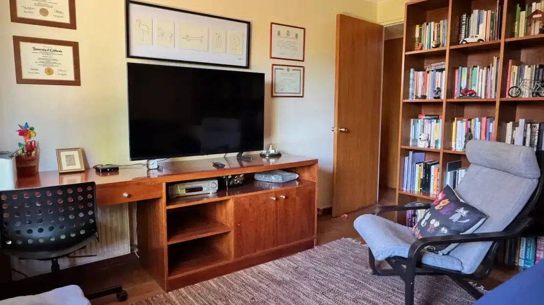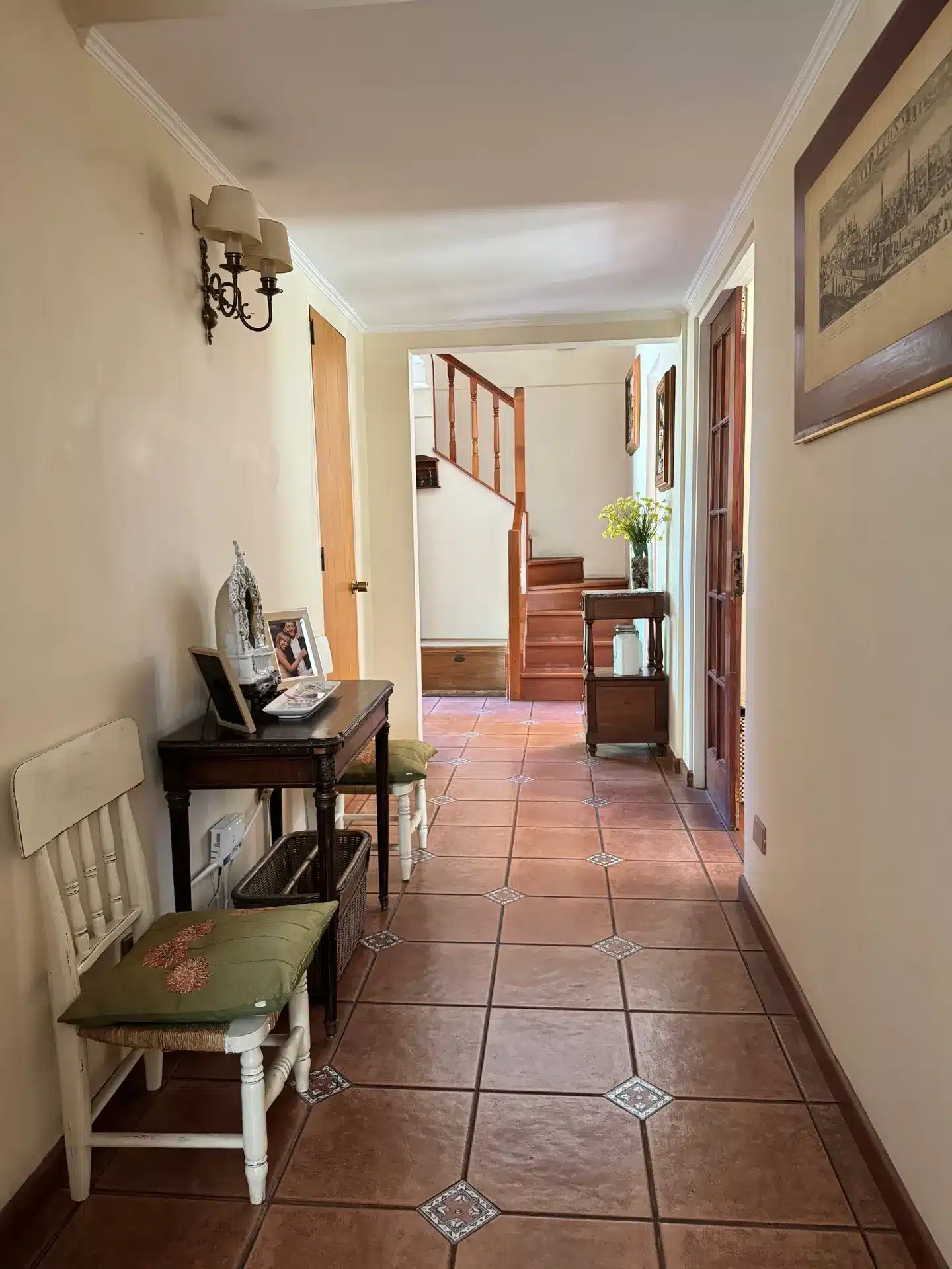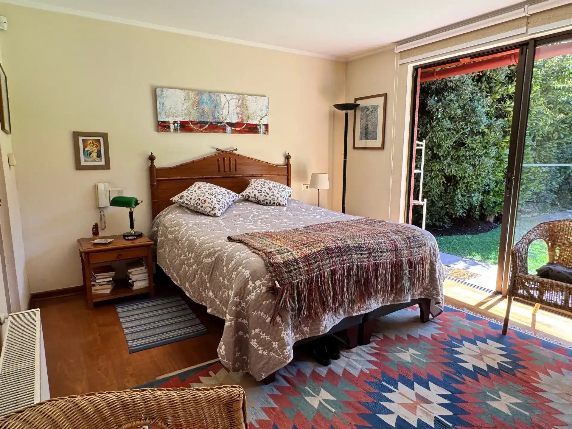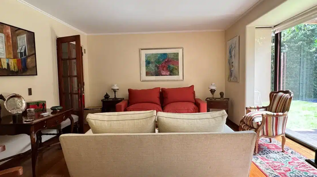 En un agradable sector tranquilo de San Carlos de Apoquindo, frente a plaza con guardia, se encuentra esta buena casa aislada de dos pisos con buen terreno. Ingresamos a través de un porche y nos encontramos con un hall de acceso. El espacio de living comedor es semi separado por un mueble en obra. Ambos son de muy buen tamaño y tienen salida a la terraza y jardín. La cocina es muy grande, está remodelada, posee muchos muebles y tiene mucha capacidad para guardar. Posee además un buen sector para comedor de diario. Desde la cocina accedemos a la pieza y baño de servicio. Además de eso tenemos acceso a la logia que nos comunica al sector de estacionamientos. En el primer piso está el dormitorio principal, muy amplio, en suite y con lindas vistas al jardín y con mucha luz, posee tambien salida directa al patio. En este piso se encuentra otro dormitorio y un baño completo, además de muchos espacios de bodega. En el segundo piso, se encuentra la sala de estar y tres dormitorios de gran tamaño mas un baño completo. El jardín posterior es muy amplio, posee una buena terraza techada, un gran sector de pasto, piscina y muy linda vegetación. CARACTERISTICAS CASA 2 estacionamientos + calefacción central + cuarzo en la cocina CARACTERISTICAS BARRIO Seguridad ciudadana + parques + ciclovías + supermercados + clínicas + universidades + colegios Coordinar con Jacqueline Rupert al 992501973 o Cecilia Ramoneda al 992371976 Rupert y Ramoneda Propiedades